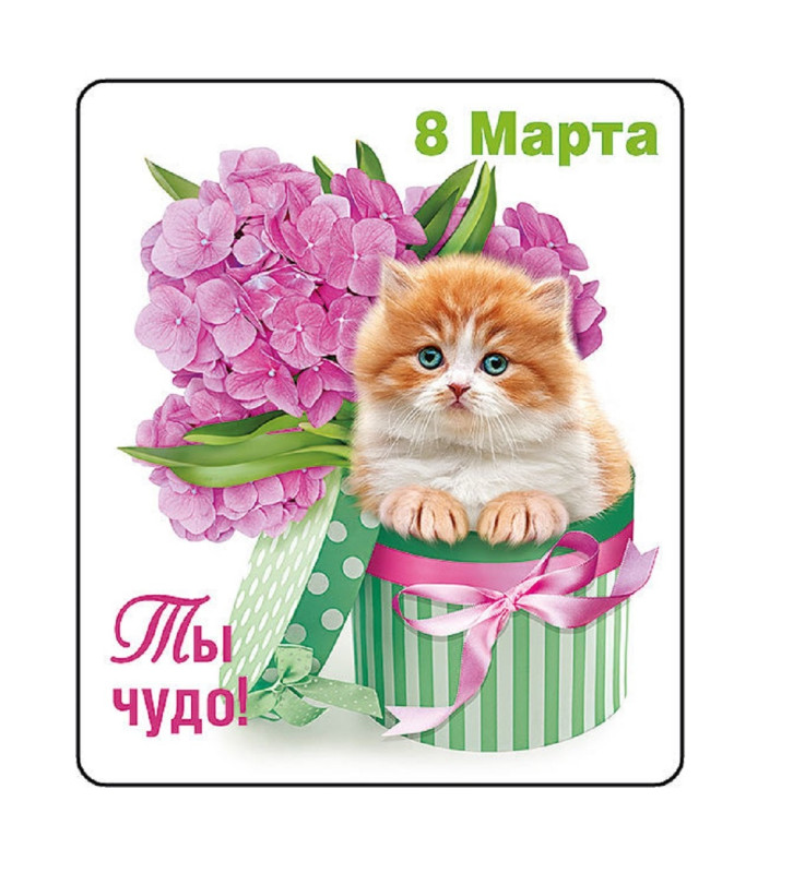 51.16.765 Магнит "8 Марта.Ты чудо! Котенок в коробке с цветами" Размер 7 х 9 см.