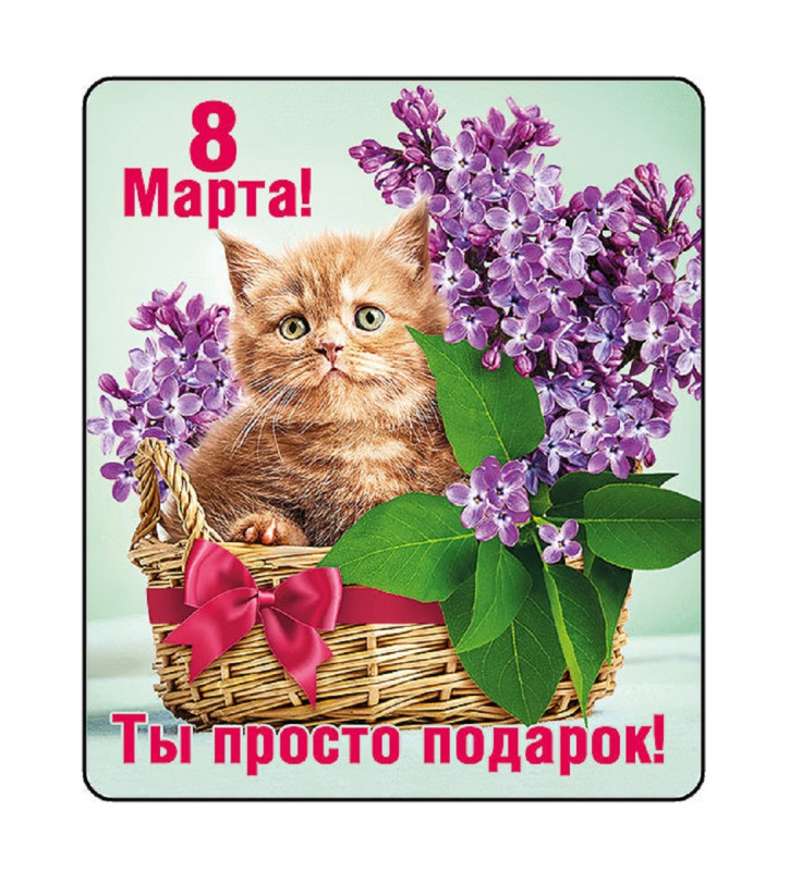 51.16.772 Магнит "8 Марта! Ты просто подарок! Котенок и сирень" Размер 7 х 9 см.