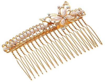 1000627 Гребень "Бабочка жемчужная" металл. Длина 8 см.