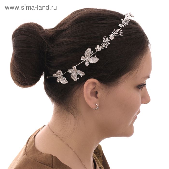 1211324 Диадема - гребень "Бабочка со стразами" на 2-х невидимках. Длина 30 см.