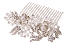 ТЕ 039810 Гребень серебро с жемчугом. Длина 8 см. Металл