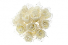 916014440 Молочные цветы в букете (12 шт.) из фоамирана с жемчужиной для украшения прически