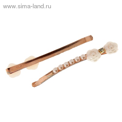 834506 Набор невидимок "Две белых жемчужных розы". (2 шт.) Металл