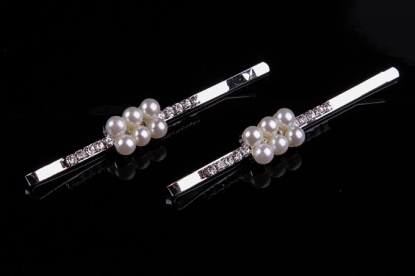 ZA01030 Невидимки Шесть бусин на стразовой полоске серебро (комплект 2 шт.)