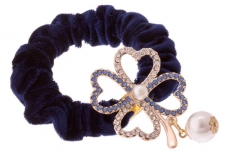 ТЕ 163811 Резинка синяя бархатная "Стразовый цветок с малой жемчужиной"
