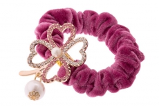 ТЕ 164111 Резинка темно розовая бархатная "Стразовый цветок с малой жемчужиной"