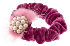 ТЕ 175811 Резинка темно розовая бархатная "Жемчужный цветок"