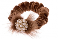 ТЕ 177111 Резинка коричневая бархатная "Жемчужный цветок"