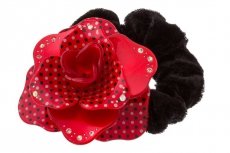 ТЕ 196964 Резинка бархатная " Красный керамический цветок в горох"