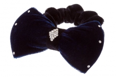ТЕ 209806 Резинка бархатная " Темно синий бантик с бриллиантом"