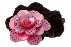 ТЕ 224282 Резинка бархатная " Розовая керамическая роза в горох"