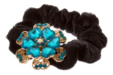 ТЕ 234479 Резинка бархатная " Бирюсовый цветок из страз"