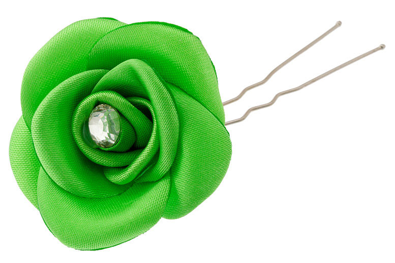 216283234 Шпилька "Зеленая роза" из ткани.Длина 7 см.
