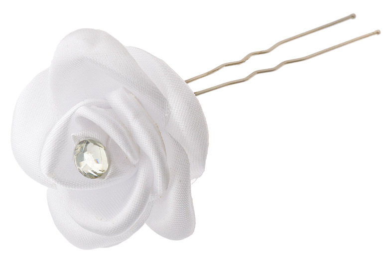 216920433 Шпилька Белая тканевая роза большая 5 см