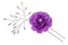 ТЕ 279059 Шпилька "Сиреневый цветок со стразами" из ткани.Длина 6,5 см.