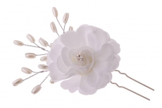 ТЕ 279067 Шпилька "Белый цветок со стразами" из ткани.Длина 6,5 см.