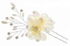 ТЕ 291722 Шпилька "Кремовый цветок со стразами" из ткани.Длина 6,5 см.
