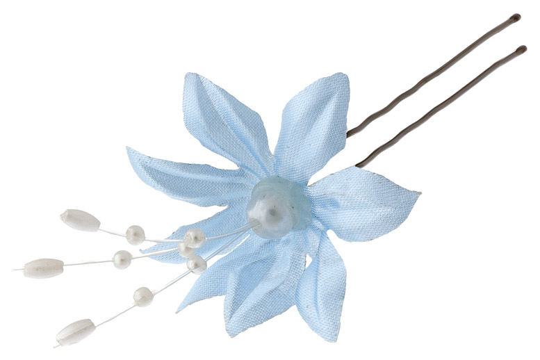216197334 Шпилька "Голубой цветок с бусинами" из ткани.Длина 7 см.