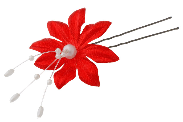216197834 Шпилька "Красный цветок с бусинами" из ткани.Длина 7 см.