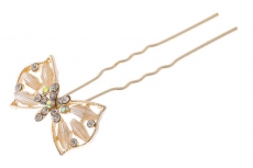 ТЕ 175307 Набор шпилек "Бантик с кремовыми камнями" (2 шт.) Длина 7 см. Металл