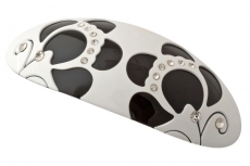 908414138 Заколка автомат Белое поле с черными цветами металл