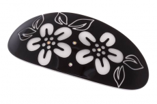 ТЕ 234776 Заколка автомат" Белые цветы на черном фоне" Длина 9 см.