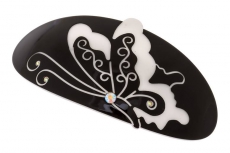 ТЕ 234792 Заколка автомат" Черная бабочка на белом фоне" Длина 9 см.