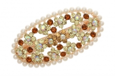 1808276939 Заколка автомат Овал из желтых камней в жемчужном окружение