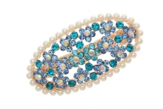 1808277339 Заколка автомат Овал из голубых камней в жемчужном окружение