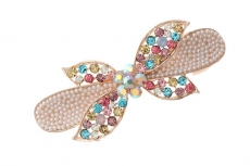 1808287439 Заколка автомат Бабочка из жемчуга на стразовой цветной полосе