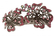 908145038 Заколка - автомат "Два цветка из розовых страз" Металл