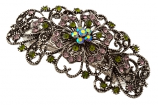 908428538 Заколка - автомат "Цветок в розовых и зеленых стразах" Металл