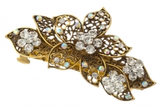 908429038 Заколка автомат "Большой белый цветок" Стразы,золото. Металл