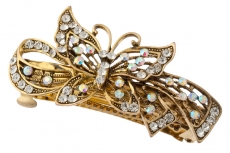 908432638 Заколка автомат Бабочка из белых страз на бантике