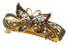 908432838 Заколка автомат Бабочка из черных страз на бантике