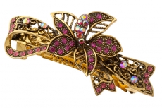 908436838 Заколка автомат Малиновый цветок на бантике золото