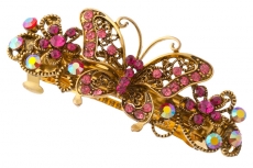 908442038 Заколка автомат Малиновая бабочка с 2 цветками по бокам