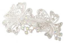 908445438 Заколка - автомат "Два белых цветка в стразах" Металл