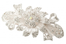 908446238 Заколка - автомат "Белый цветок в стразами" Металл
