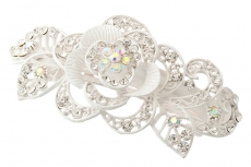 908446738 Заколка - автомат "Белый цветок в стразах" Металл