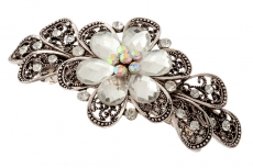 908557638 Заколка автомат Цветок из белых камней