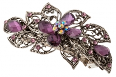 908560638 Заколка - автомат серебро "Цветок большой с сиреневыми камнями" Металл