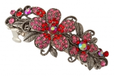 908604239 Заколка автомат "Два цветка из красных страз" Металл