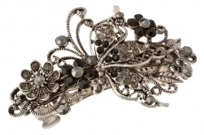 908607739 Заколка автомат Полбабочки черной из страз на цветке