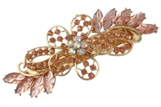 ТЕ 655739 Заколка автомат "Персиковый цветок в золоте". Длина 9 см. Металл