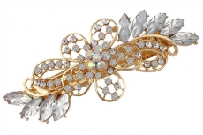 ТЕ 655742 Заколка автомат "Белый цветок в золоте". Длина 9 см. Металл