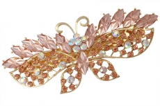 ТЕ 655778 Заколка автомат "Персиковая бабочка в золоте". Длина 9 см. Металл