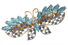 ТЕ 655784 Заколка автомат "Голубая бабочка в золоте". Длина 9 см. Металл