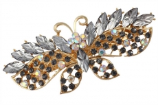 ТЕ 655788 Заколка автомат "Черная бабочка в золоте". Длина 9 см. Металл