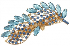 ТЕ 655794 Заколка автомат "Два голубых листочка в золоте". Длина 9 см. Металл